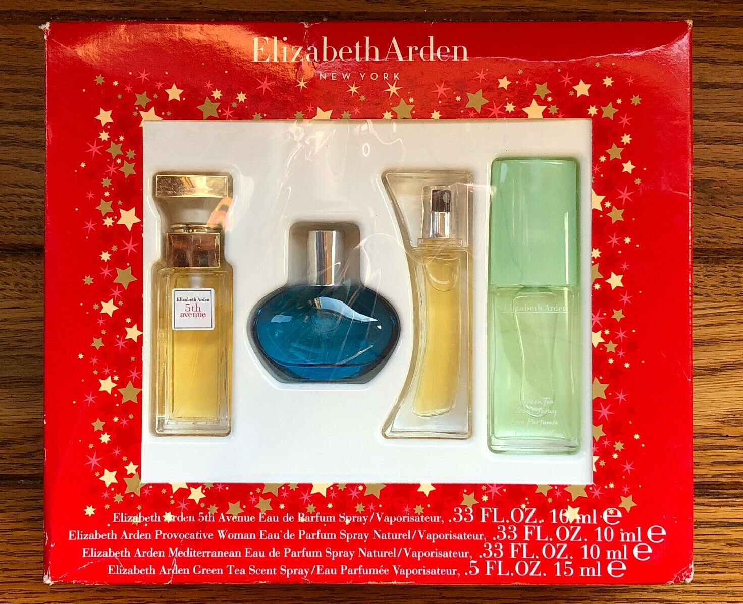 Contents: 1 5th Avenue Spray, 1 Provocative Woman Spray, 1 Mediterranean Spray, 1 Green Tea Scent Spray