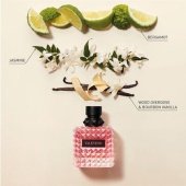 Valentino Valentino Donna Born In Roma is categorized as an Oriental Floral fragrance to the nose based on the combination of notes. Bergamot and black currant are among the citrusy and fruity opening top notes that make up Valentino Donna Born In Roma’s flavour and fragrance notes. The deep woody and spice base notes evoke cashmeran, vanilla, and guaiac wood, while the heart Centre notes of green and white flowers meld with green tea.